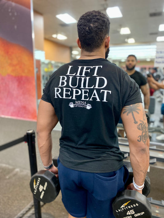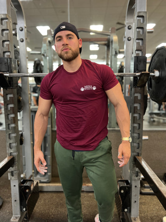 Sold outLIFT BUILD REPEAT Maroon Tees